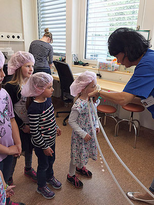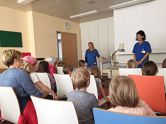 Wie funktioniert ein Kinderspital, wie sieht es hinter den Kulissen aus, was machen ein Kinderarzt oder eine Krankenschwester? Antworten auf diese Fragen und ganz viele spannende Einblicke erhielt eine wissensdurstige Kinderschar, als sie am Donnerstag vor Ostern zusammen mit ihren Eltern das Kinderspital St.Gallen besichtigten. Auf diesem Besuch, den der Zuzwiler Familienverein «Kidolino gemeinsam» organisiert hatte, konnten die Kinder einen Operationssaal besichtigen, spielerisch den eigenen Blutdruck messen oder den eigenen Finger eingipsen sowie ganz, ganz viele Fragen stellen, die von den Spitalmitarbeitenden allesamt ebenso geduldig wie kompetent beantwortet wurden. Der Besuch war ein voller Erfolg und wird den Kidolino-Kids sicher noch lange in bester Erinnerung bleiben.