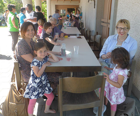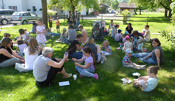 Schon die erste Geschichte «s’Gschpängschtli Hii-Pii und die chli Sophie» liess alle in eine Fantasiewelt eintauchen. Der Kasperli hilft darin einem kleinen Fuchs, der fürchterlich in der Klemme steckt. Und auch das Gespenst, welches im Wald für viel Unruhe sorgt und Schabernack treibt, liess die Kinderaugen strahlen. Frisch gestärkt mit feinen Leckereien vom Buffet ging es nach der Pause – welche der milden Temperaturen wegen draussen zum Picknick im Gras einlud – mit dem zweiten Stück «de Räuber Klaudiwau und s’Chrütterfraueli» weiter. Der Kasperli möchte das Chrüterfraueli im Wald besuchen. Unterwegs befreit er einen Maulwurf aus einer Tierfalle. Hat der Räuber die Falle aufgestellt? Und kann es der kleine Zipfelmützenträger mit dem finsteren Bösewicht aufnehmen? Er kann – nicht nur wegen seiner gewitzten und schlauen Art, sondern auch weil ihn gegen 100 Kinderkehlen lautstark unterstützten. Es war ein abenteuerlicher Nachmittag mit vielen lachenden Kindergesichtern!