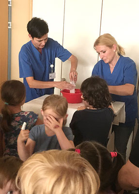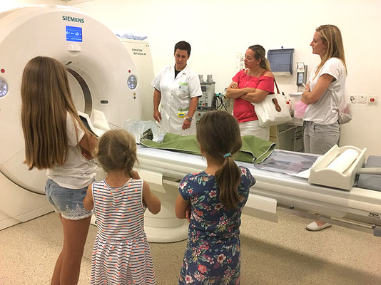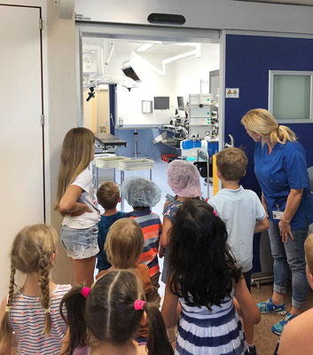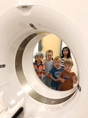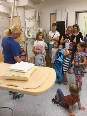 Faszination Kinderspital: Wie ensteht ein Röntgenbild, was machen ein Arzt oder eine Krankenschwester, wofür braucht es Spritzen, wie wird ein gebrochener Finger eingegipst, wie bequem ist ein Spitalbett und wie riecht eigentlich die «Schlafluft», die man einatmen muss, damit man während einer Operation keine Schmerzen verspürt? Wenn es ums Spital geht, haben Kinder viele Fragen. Kindgerechte Antworten und Erklärungen, aber auch praktisch-spielerischen Anschauungsunterricht erhielten die wissensdurstigen Kinder und interessierten Eltern des Zuzwiler Familienvereins «Kidolino gemeinsam», als sie kürzlich das Kinderspital St.Gallen besuchten. Auf einem spannenden Rundgang konnten die kleinen und grossen Teilnehmenden einen Blick hinter die «Kispi»-Kulissen werfen und dabei nicht nur einen Operationssaal oder ein Patientenzimmer besichtigen, sondern auch ganz, ganz viele Fragen stellen, die von den Spitalmitarbeitenden allesamt ebenso geduldig wie kompetent beantwortet wurden. Der Ausflug in das Kinderspital St.Gallen war ein voller Erfolg – der Anlass wir den Kidolino-Kids sicher noch lange in bester Erinnerung bleiben.