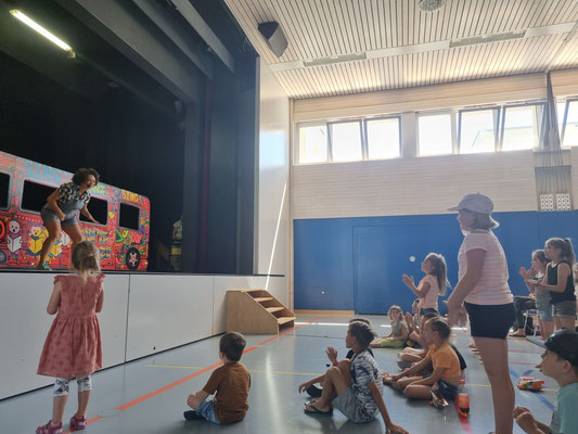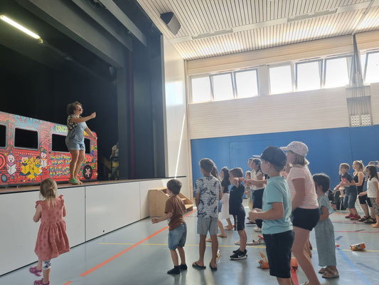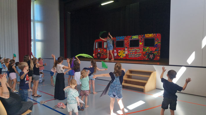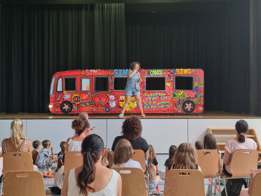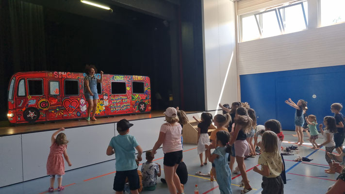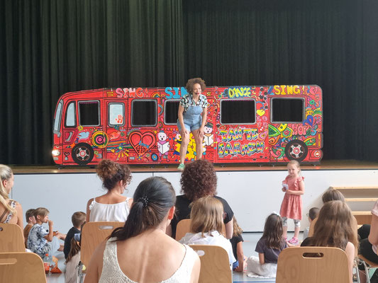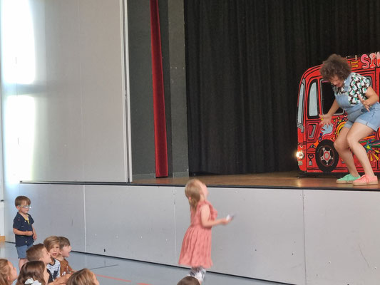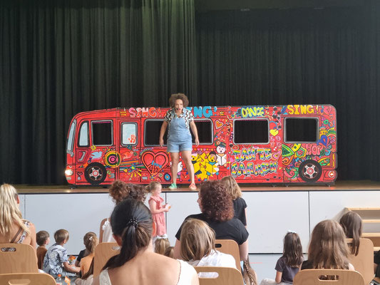Die Freude war gross und die Kinder konnten es kaum erwarten, bis sich der Vorhang endlich öffnete. Kaum stand Tante Carmen und ihr Bus auf der Bühne ging die Reise auch schon los. Mit tollen Songs wie der Nuschitanz tauchten die Kids mit Tante Carmen für rund eine Stunde in eine andere Welt ab. Es wurde gelacht, getanzt und gesungen und zur Stärkung gab es ein Buffet für den kleinen Hunger und Durst.